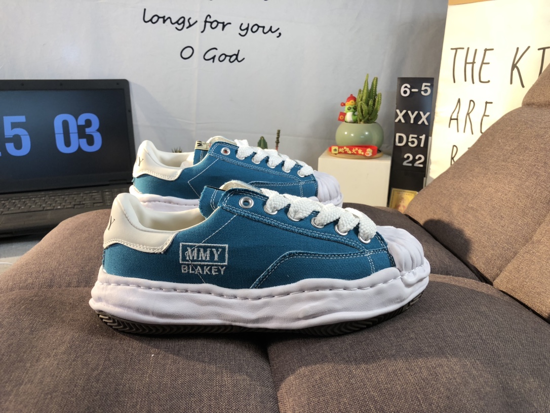 Maison Mihara Yasuhiro blue platform canvas sneakers, crafted from premium cotton with irregular sole design, blend retro street style and modern comfort for men and women.