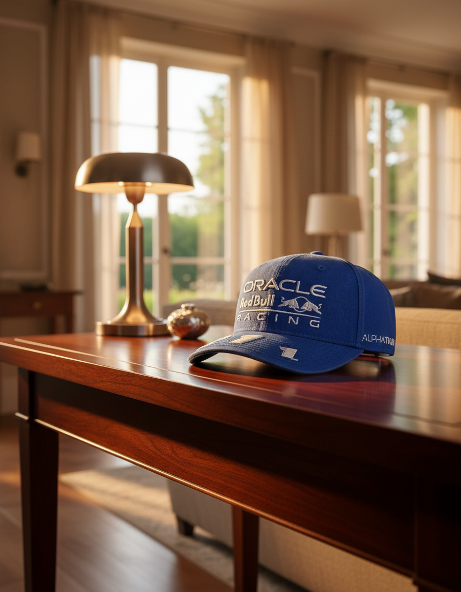 Red Bull Racing Blue F1 Cap – inspired by track spirit, made from durable breathable cotton, features logo and race graphics, Brazil flag detail at back, unisex style blending sport and fashion.