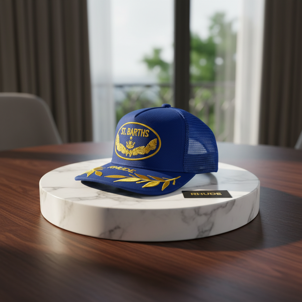 Rhude St Barths Blue Trucker Hat Embroidered Cap