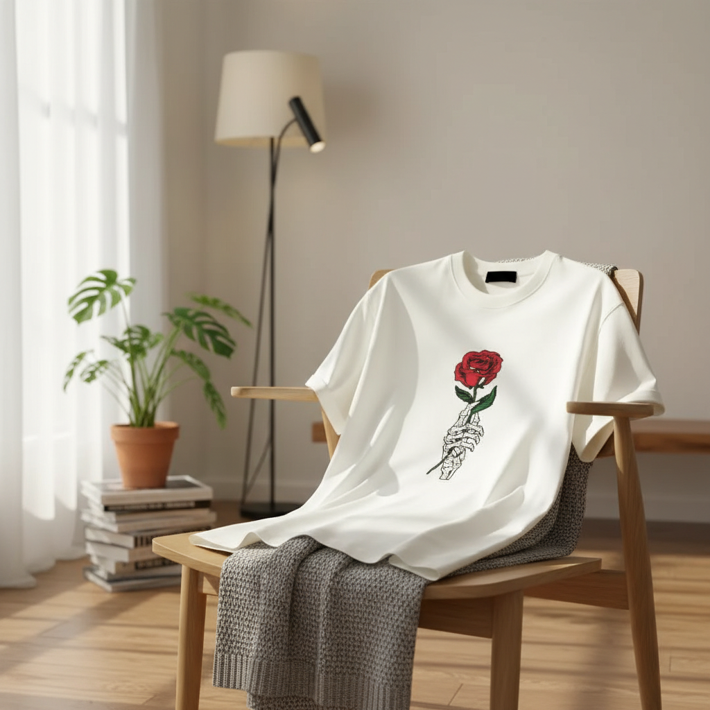 Other White Rose Skull Print T-Shirt, made of premium soft cotton, blends dark romantic style with street art, loose fit for men and women, perfect for spring and summer casual wear.